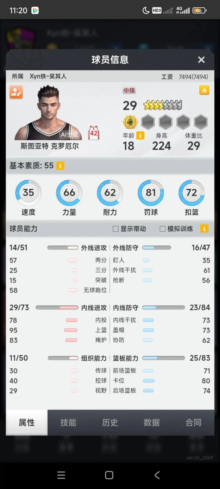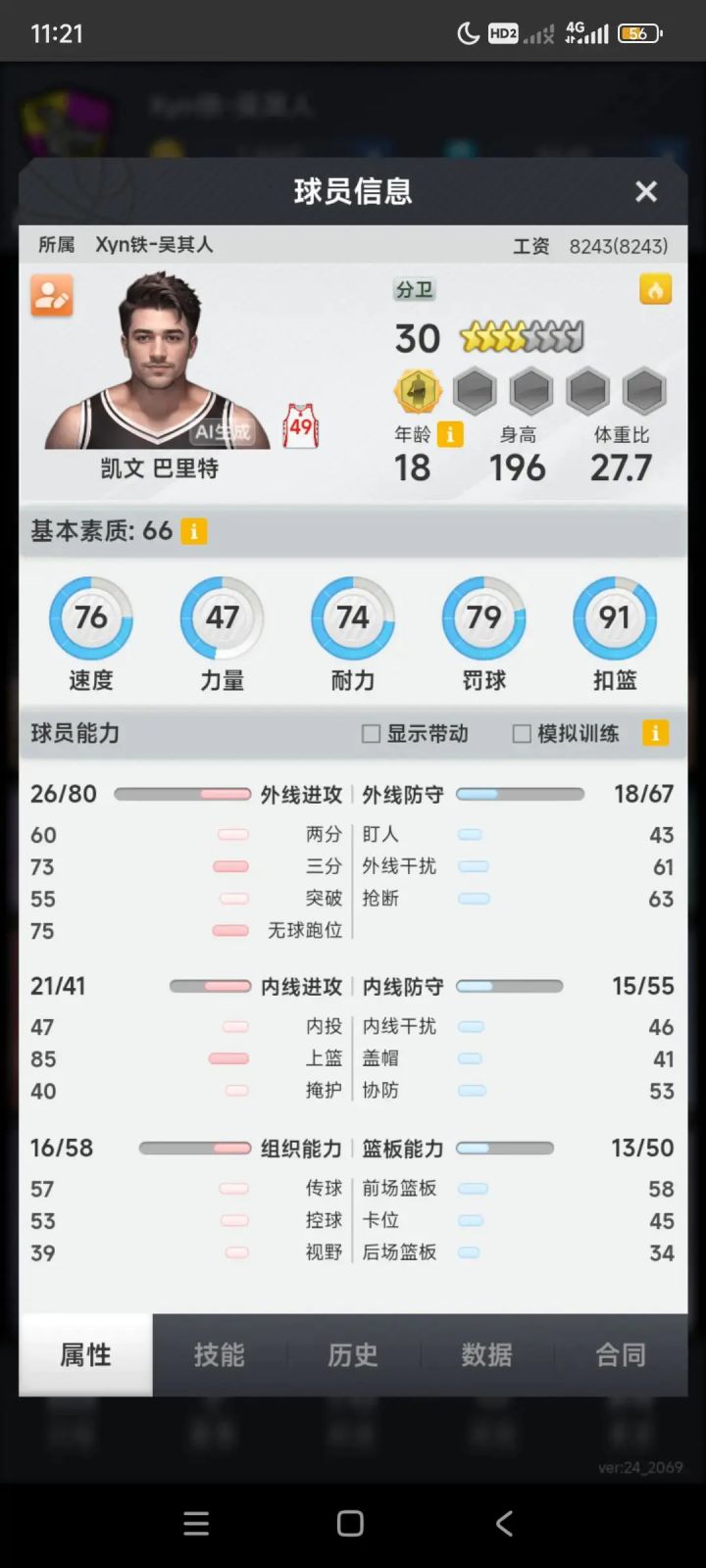 一个练完打章,试了5,6场,场均21分钟不到,45+出手28+后仰,70m苗子球员只能值八千万,1.2e属于严重溢价,呢我建议大伙二突还是别练了,这种隐藏的都没多少个,还卖不上钱,为什么市场还这么多二突呢,二突真的这么不值钱吗?只能说管理员好样的,开眼了