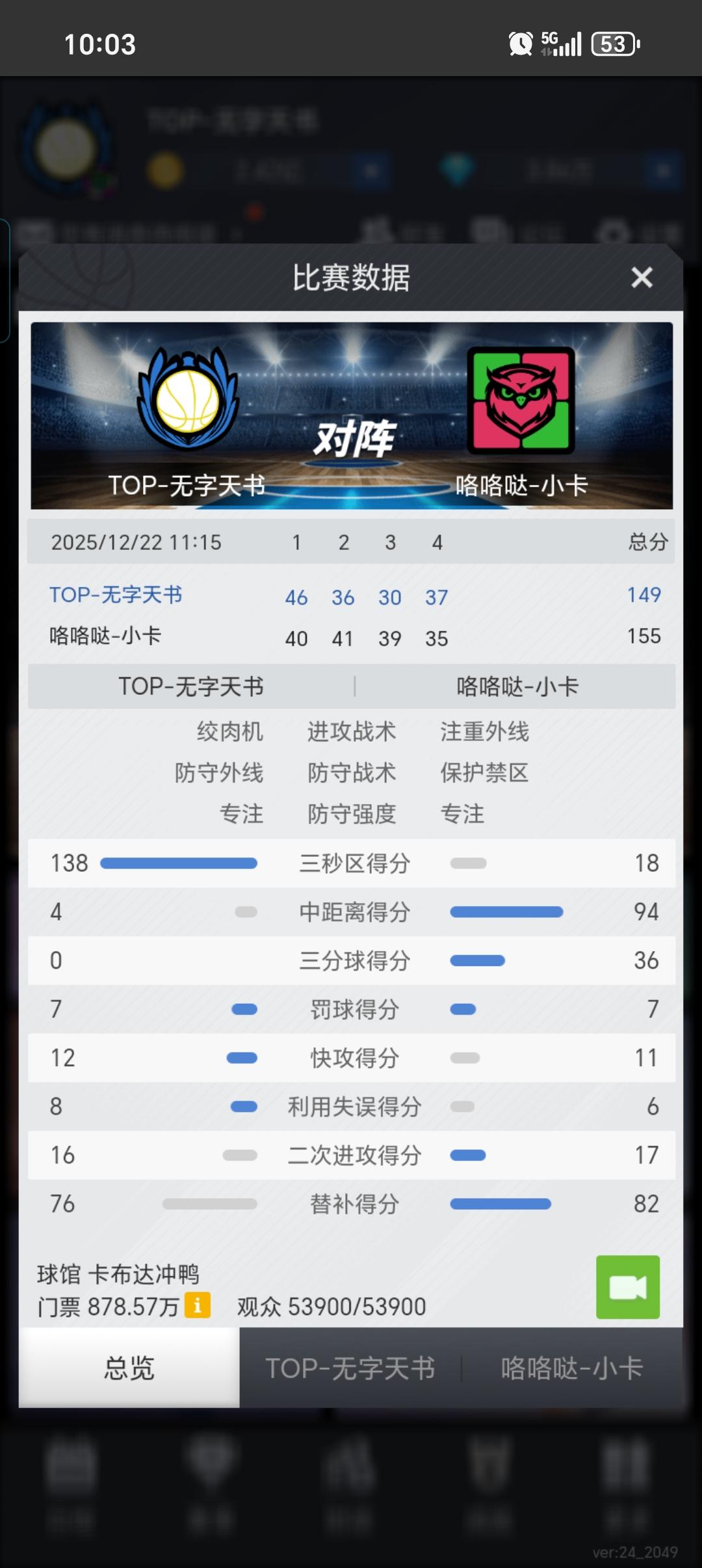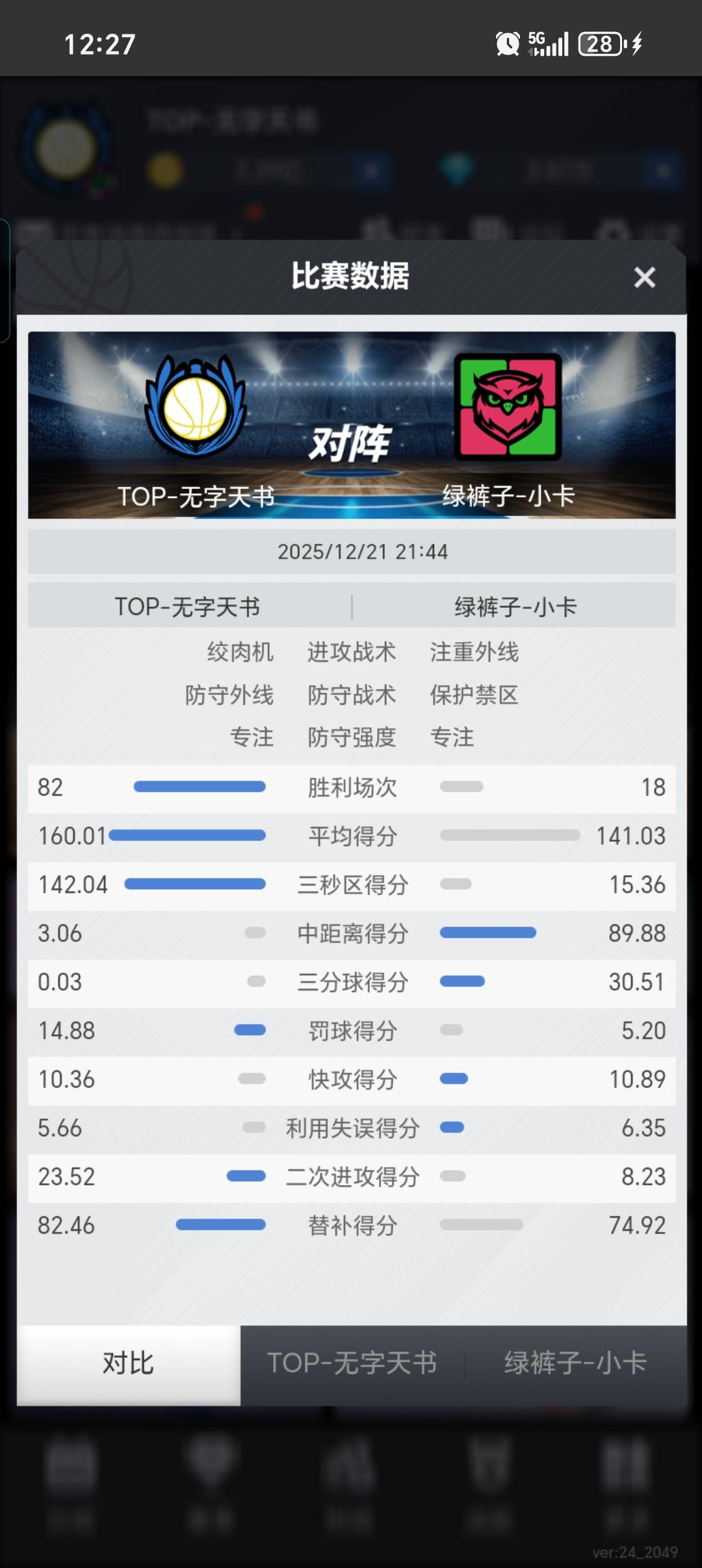 这个赛季呢,怎么说呢,是希望和失望并存的,小谢出乎了我的意料,11联常均40分依旧犀利,但是我的篮板,每场都输,已经失去了我在之前联赛里篮板称霸的能力了,虽然最后侥幸偷了个联赛第一,但是常规赛被第二双杀,被第七防反虐了一场(倾向于系统局),所以其实这赛季的想法就是升联,冠军随缘,但是首轮G1就被偷了一场主场,直接打乱计划,没办法只能开专开到底,最后两场险胜,让一追二,但是60的疲劳度,面对常规赛双