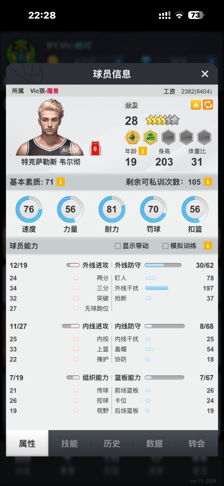 老规矩先上邀请码:R5R4WV41G1P3T5达成上贴目标:升10联93%胜率(决赛没赢)下一个目标:冲击90%上12联建队思路依然是内投队本赛季补了一个内投后卫(高内防高盖帽)打二突队有了比较稳定的提升(有没有大佬再卖一个)买了一个高内攻板凳内投队给大家的刻板印象是工资高优点是下限高,不用费心找高后仰大哥欢迎更多人来玩内投 可以私下交