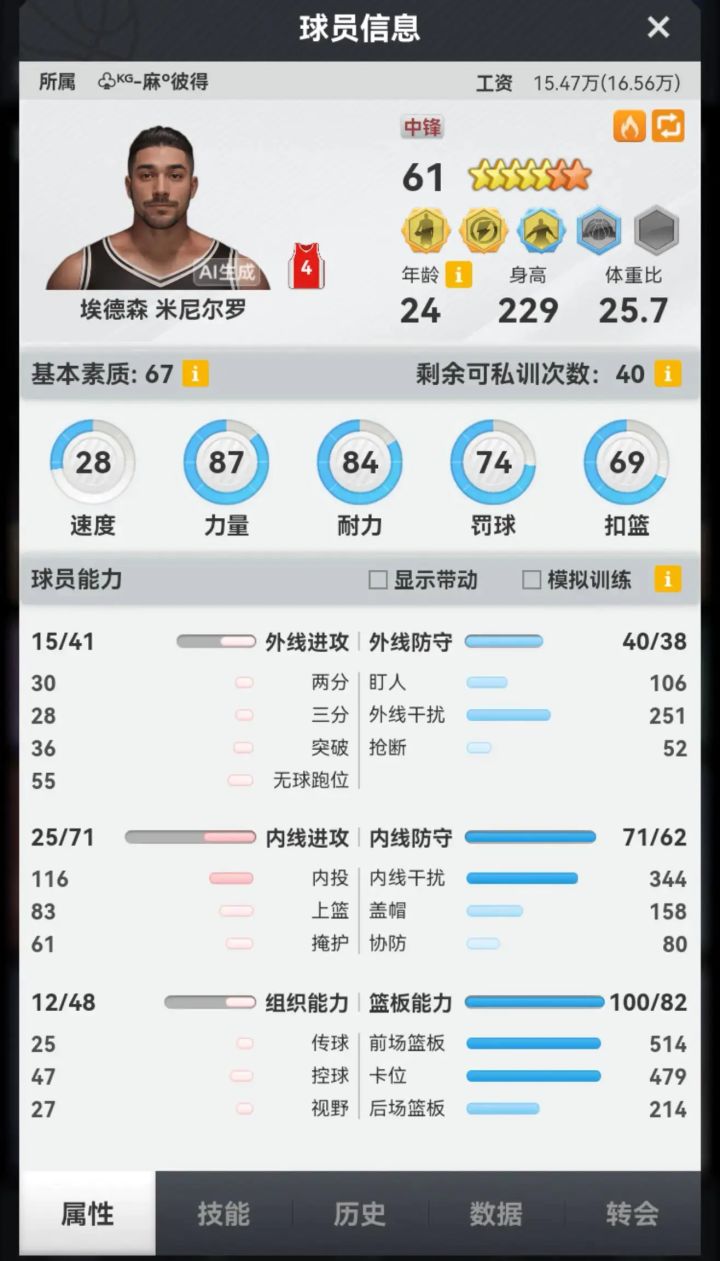 你这篮板能进九联我很惊讶,外线能力不够,篮板数值也不够