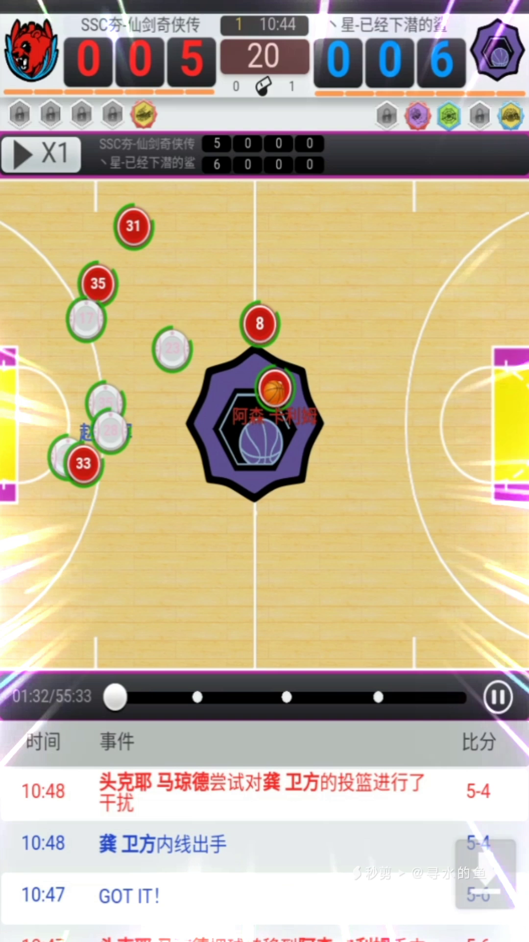 来看一下我的神仙球 进球描述:全场长传,板后出手,场外后仰跳投! 阵容配置:c,pf,sf,sg均为无球空间蓝领,pg为无球二突 球员属性:4号是练了视野的蓝领,1号是练了无球属性的二突 战术思路:无球属性会带动快下隐藏,从而让pg能发动快攻,蓝领抢到篮板后直接全场长传,pg完成终结,高效又好看! 码:64TUEZTVQPKBYW
