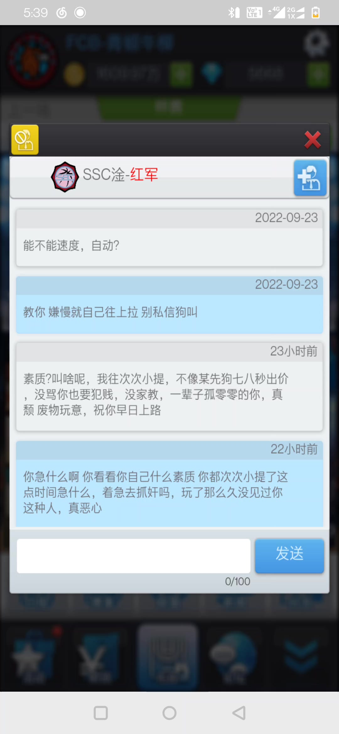 起因就是转会出价,35岁左右的老人了,刚回坑想买来跳级,这赛季还长不想出太高,所以出价的时候挺犹豫的,再加上是在上班摸鱼,出价偏慢,但没卡秒,而且每次都是提一次价再报价。这人提都不提事儿还那么多。