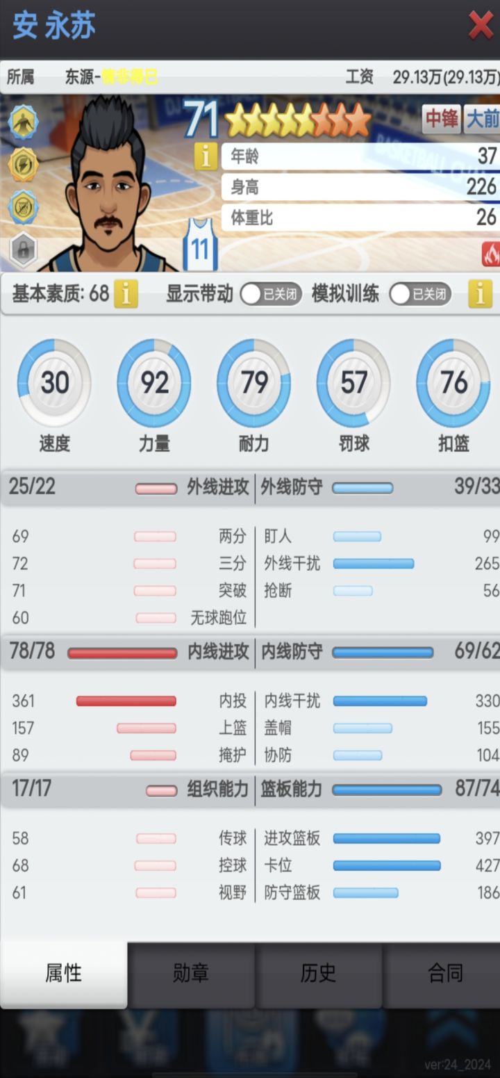 码,L4WV7J6YEBQDWK篮板平均+2应该好很多,有个大哥短板下赛季得换一下。不过选秀还不错,赚了俩苗。可惜没出控卫的,不然下赛季可以一块练了。135末回来玩球馆从43点到59了,如无意外下赛季就能满球馆。
