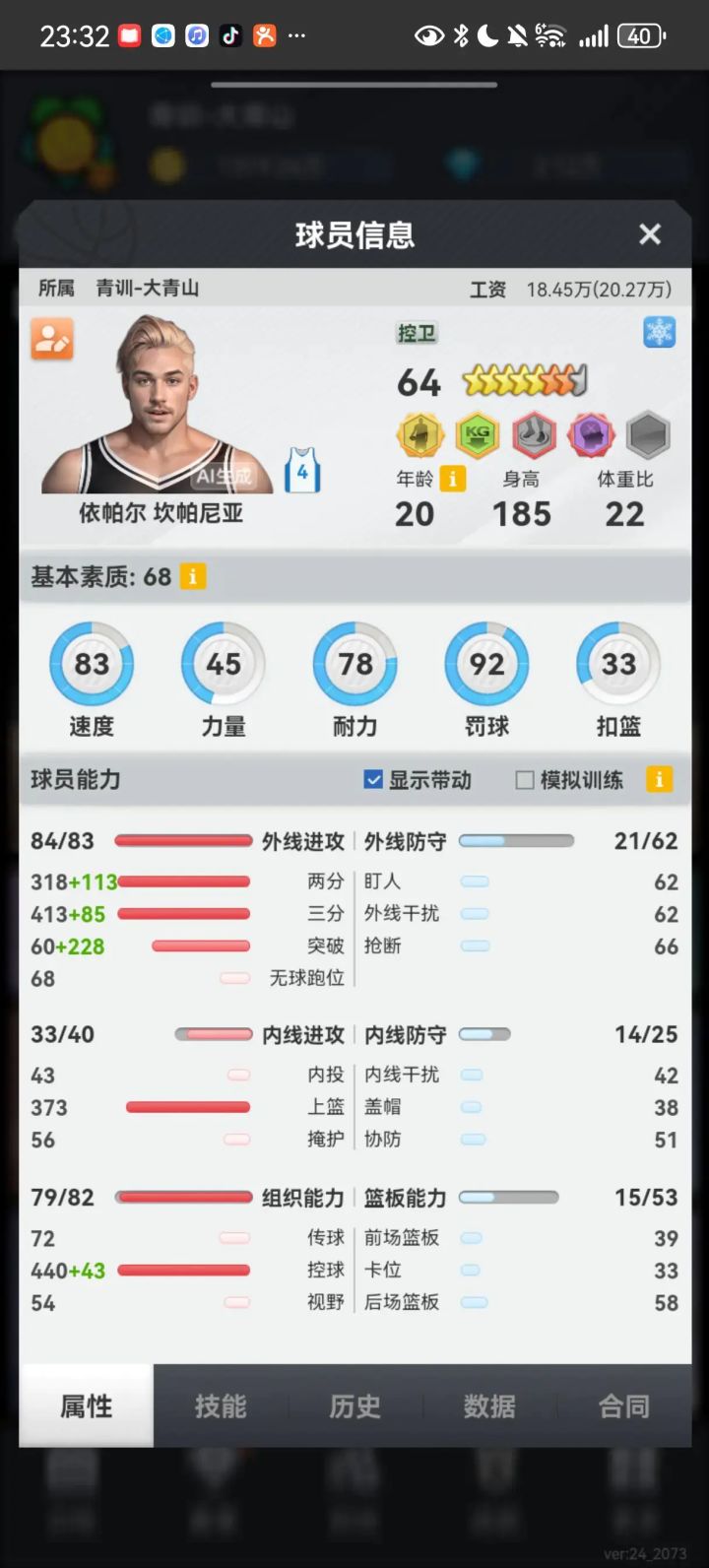你这篮板能进九联我很惊讶,外线能力不够,篮板数值也不够