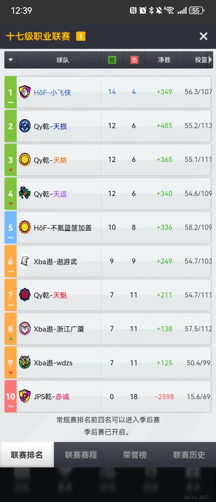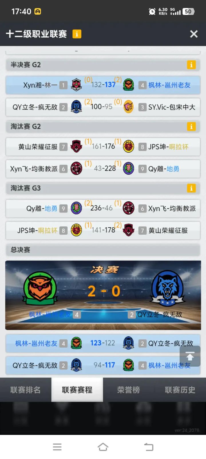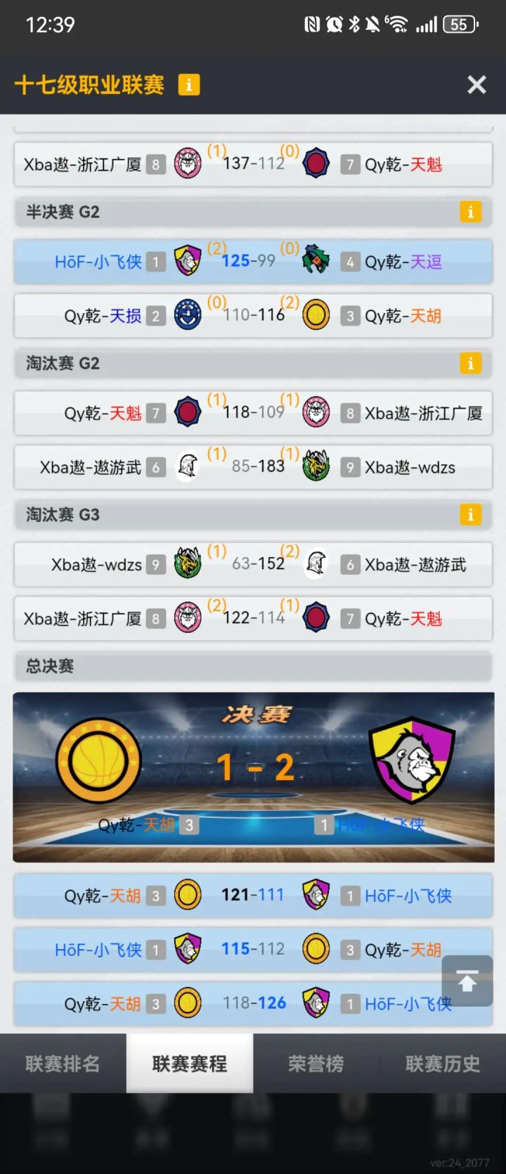 本来12联计划保级的,结果队员们太给力了最后惊险进了季后赛。半决赛面对常规赛被他双杀的内投队居然黑四成功。想着总决赛能打满三场赚够门票就知足了。结果总决赛第一场轻对专客场绝杀,计划有变,这是要夺冠的节奏?回主场三军用命大胜拿下,我们是冠军!