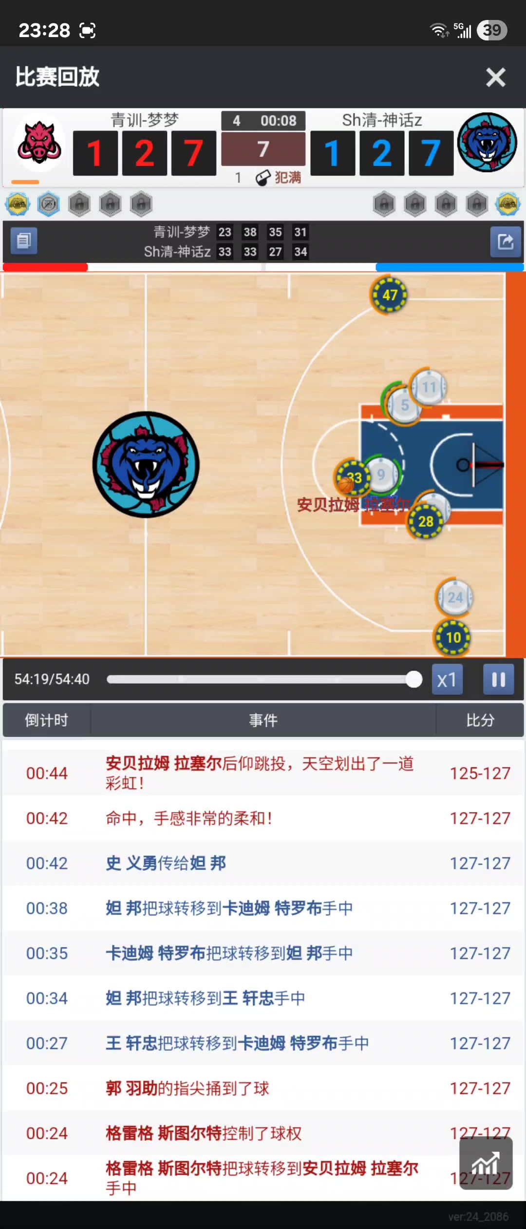 在比赛最后3秒, 中锋 卡迪姆 特罗布 拿到了最关键的防守篮板(整体篮板被对方爆了22个其中前场篮板对方24个我方7个)我方紧急叫了个暂停,又由中锋卡迪姆 特罗布在前场发球,篮球直接给到大前锋 史 义勇 迎着对方的防守和补防过来的人完成了读秒爆扣杀死了比赛,球队在5联的第二年终于拿到了联赛的冠军🏆,朝着更高的联赛前进。