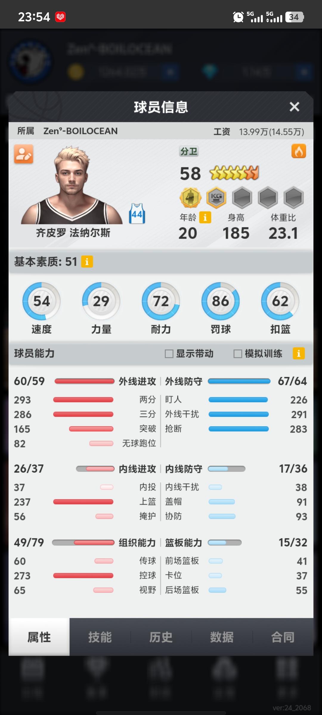 这个赛季呢,怎么说呢,是希望和失望并存的,小谢出乎了我的意料,11联常均40分依旧犀利,但是我的篮板,每场都输,已经失去了我在之前联赛里篮板称霸的能力了,虽然最后侥幸偷了个联赛第一,但是常规赛被第二双杀,被第七防反虐了一场(倾向于系统局),所以其实这赛季的想法就是升联,冠军随缘,但是首轮G1就被偷了一场主场,直接打乱计划,没办法只能开专开到底,最后两场险胜,让一追二,但是60的疲劳度,面对常规赛双