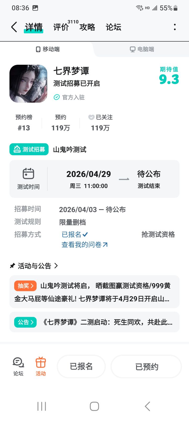 亲爱的玩家朋友们,七界梦谭想死你们了!我们将于4月29日开启「山鬼吟」测试,官网招募现已开放,欢迎大家报名参与!屈子诗吟的山鬼神女,身披薜荔、腰束女萝,携山林万灵,独立云海山巅。纵风飒飒、木萧萧,仍赴一场心之所向的约定。这场千年前的奇幻奔赴,恰如七界梦谭与诸位的盛大重逢。本测版本,七界的姿态已经更为充盈。战斗升级。新流派“司契”,符箓引咒;御剑战斗,浮空斗法;海量化形,夺舍炼魂!剧情