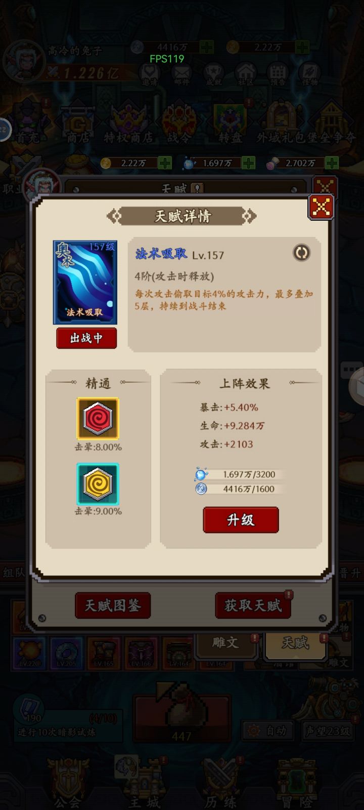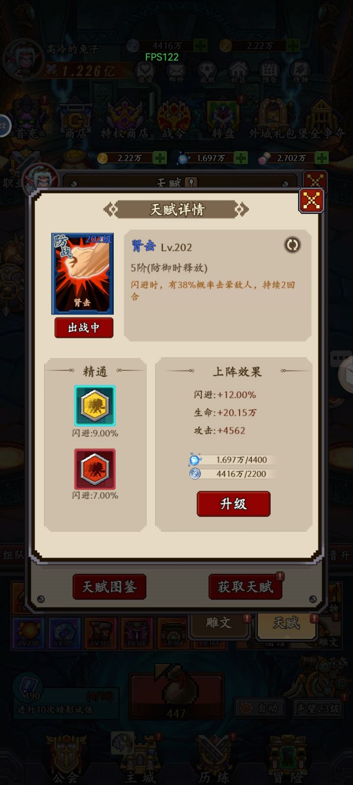 必带圣光之辉、侏儒米尔,闪避不够的带黑龙翼仔,否则必带狱火守卫。玩闪避流必须叠抗暴击,越高越好,宠物带猫,其他宠物试了效果不好。天赋必带法术吸取、狂暴复兴,闪避流就是靠攻击力打伤害的,所以提高攻击力非常重要,而且高攻击力回血能超过最大血10%完美解决了暗影技巧的克制。我和带暗影技巧的PK过,越战力100万赢了,所以理论成立。我目前是闪避击晕流打塔时选择属性闪避、宠物相关闪避流过副本基本