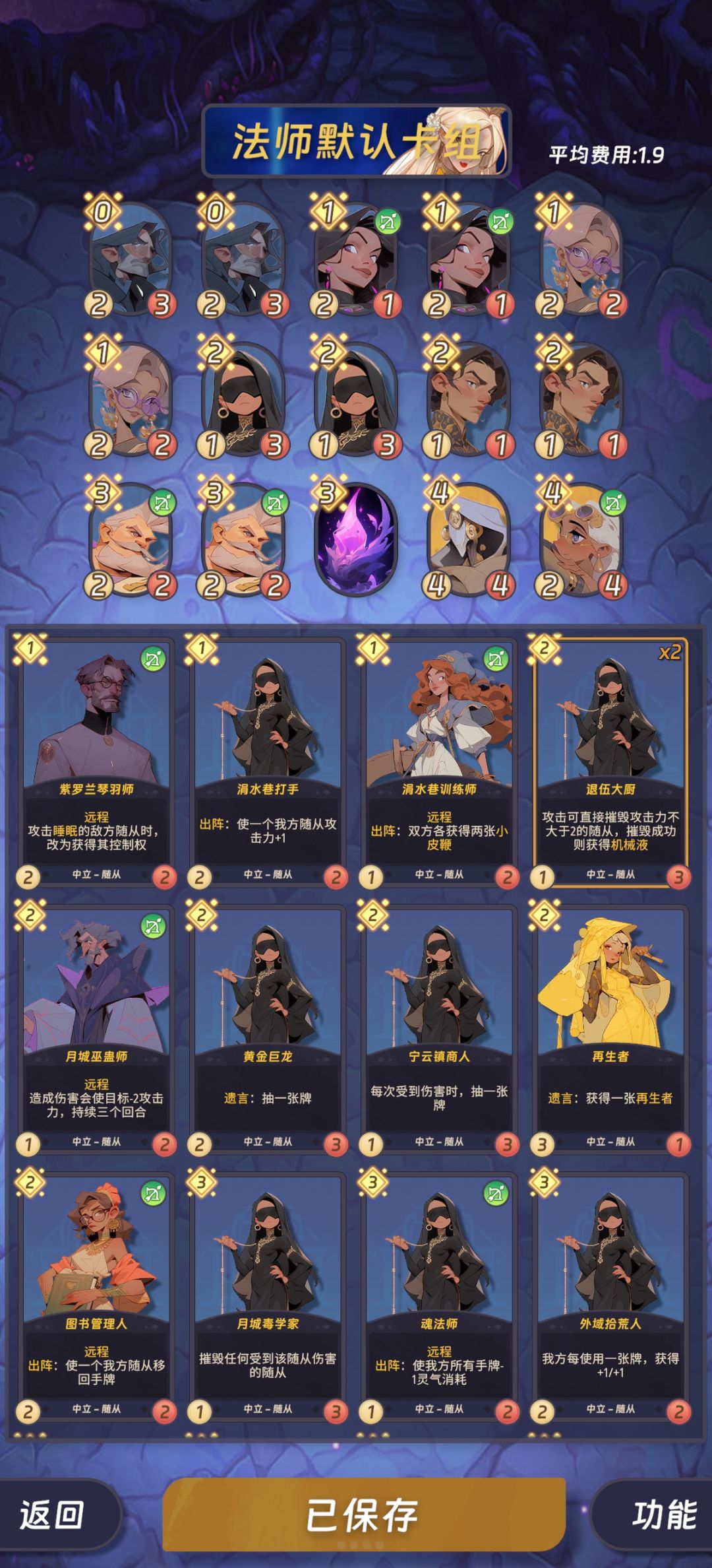 前期小生物超展开全部前压,过牌给的很慷慨完全不用担心空过。一般靠近战加远程用攻击频率抢死对手。局势不对也可以攒一波法术,养大神秘学使徒,或者靠占星师加六号机刷一波斩杀。 这套我自己用胜率挺高的。