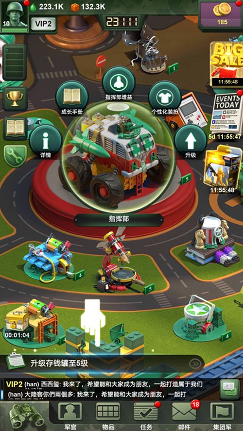 在缤纷多彩的兵人大世界里,指挥部可以说是核心建筑,是各位指挥官坐阵的关键地方呢!主页君在这里,给各位带来指挥部的核心介绍!主建筑——指挥部指挥部不同的等级会开放更多的功能和建筑,其他建筑的等级上限也是由指挥部决定;提升指挥部等级需要消耗一定的涂料和塑料;所以各位指挥官要多收集涂料和塑料来升级建筑哦!指挥部——成长手册点击【成长手册】后,可以查看指挥部下个等级开启的建筑及功能;在“指挥部增