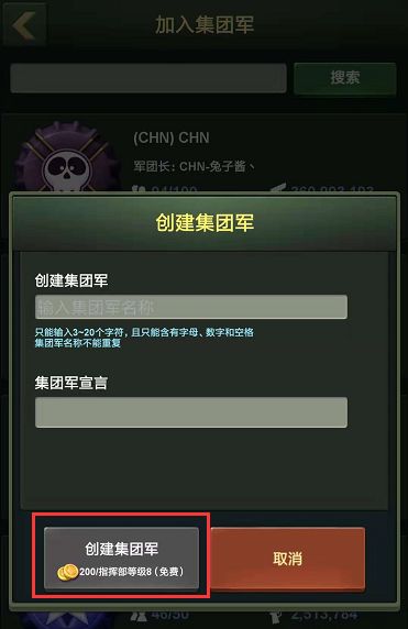 【新手进阶】集团军深度解析1 创建或加入集团军点击屏幕下方的集团军图标,进入集团军界面,在集团军界面中,玩家可以选择创建或者加入集团军。玩家需花费200金币才能创建集团军。集团军内的交流语言会自动设置為全部语言,但是可以随时修改。注意:创建集团军时,集团军的名称和宣言会成为其他玩家加入与否的参考。2 如何解散,离开或者更改集团军?不论何时何地,同一时间内只能加入一个集团军。玩家可以