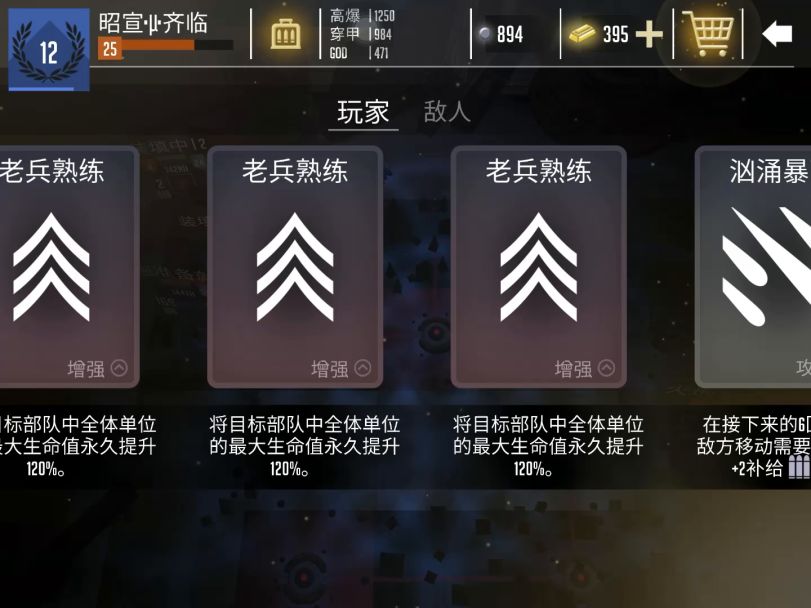 原本是想用战斗刷经验,所以取得优势后没有打敌方总部。偶然连吃两个地主,拿了一百多能量点,便尝试把战斗卡牌加成吃满、工厂建满。结果如视频同时发现了一些特性1、全局永久被动卡牌(精英训练、农田等)最多使用3张2、使用重新补给可以将部队的补给点堆到任意多3、一回合内使用地主可以将能量点堆到任意多。但是结束回合后下一回合开始时会将能量点限制到40