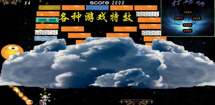 这是一款休闲的经典游戏--打砖块。在其中我加入了10多种不同的特效,除大家耳熟能详的给滑竿加长,变短,增加生命,加速,减速等等,我还加入了一些其他更有趣的特效。千言万语道不尽,一切乐趣尽在游戏之中。同时希望能给大家的生活增加一丝色彩。