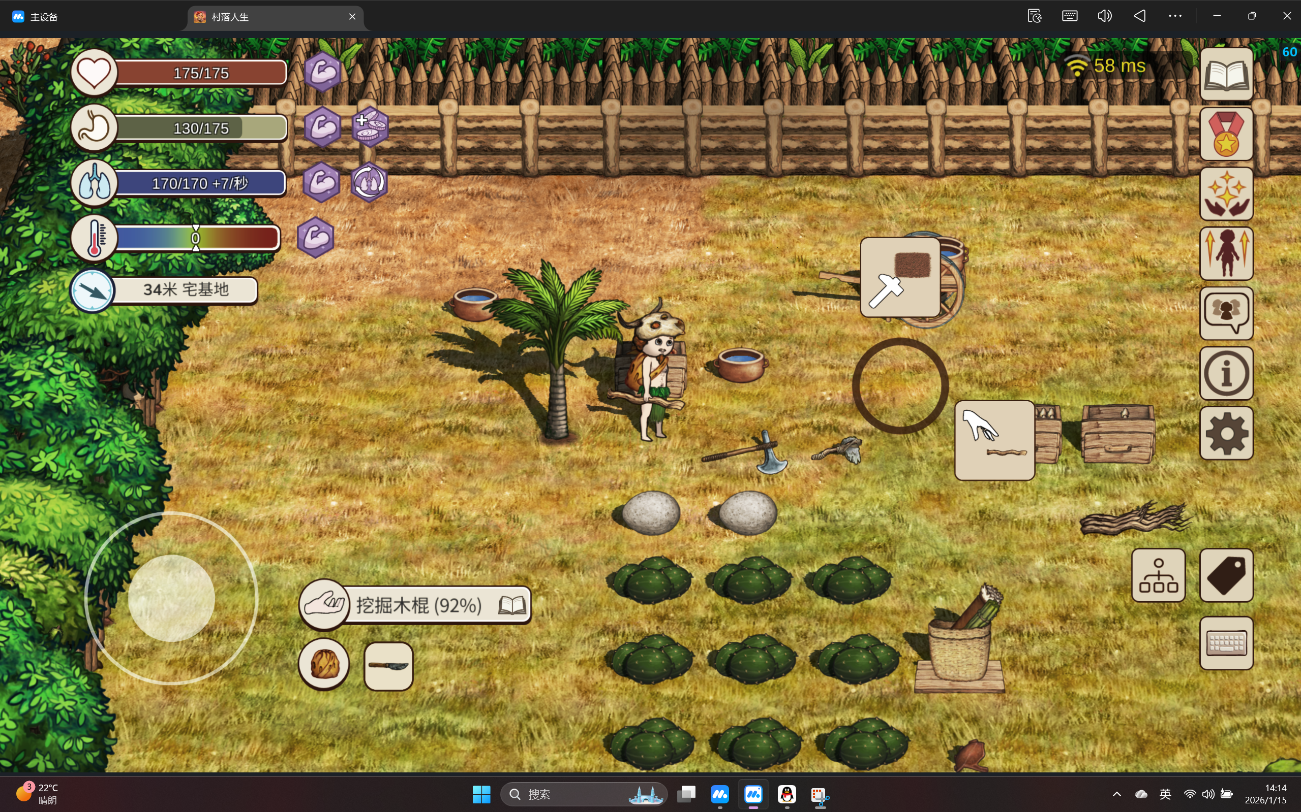 欢迎入坑关于此游戏的核心玩法就是科技树升时代,查看配方图鉴,没错就是右下角那个族谱一样的图标,这个游戏最大的问题就是没有指引帮助认识图标,玩半个月才看到科技树图标,言归正传一、首先要做的就是活下去(1)采集用手:如红蓝两种果子,鸟蛋用工具:胡萝卜(挖掘木棍),葫芦(燧石刃),香蕉(镰刀),伊芙果(镰刀)陷阱:跳鼠,龙蟹(稍后期一些)打猎:首推打鱼(尖尖的杆子),斑羚,鬣