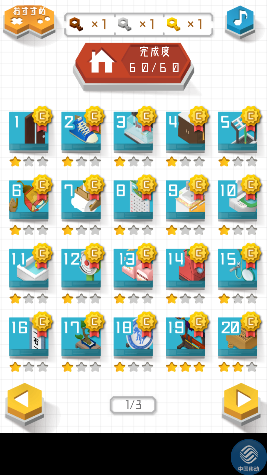 通关了,怎么没有提示?还多出来几把钥匙,没满星提示c是什么意