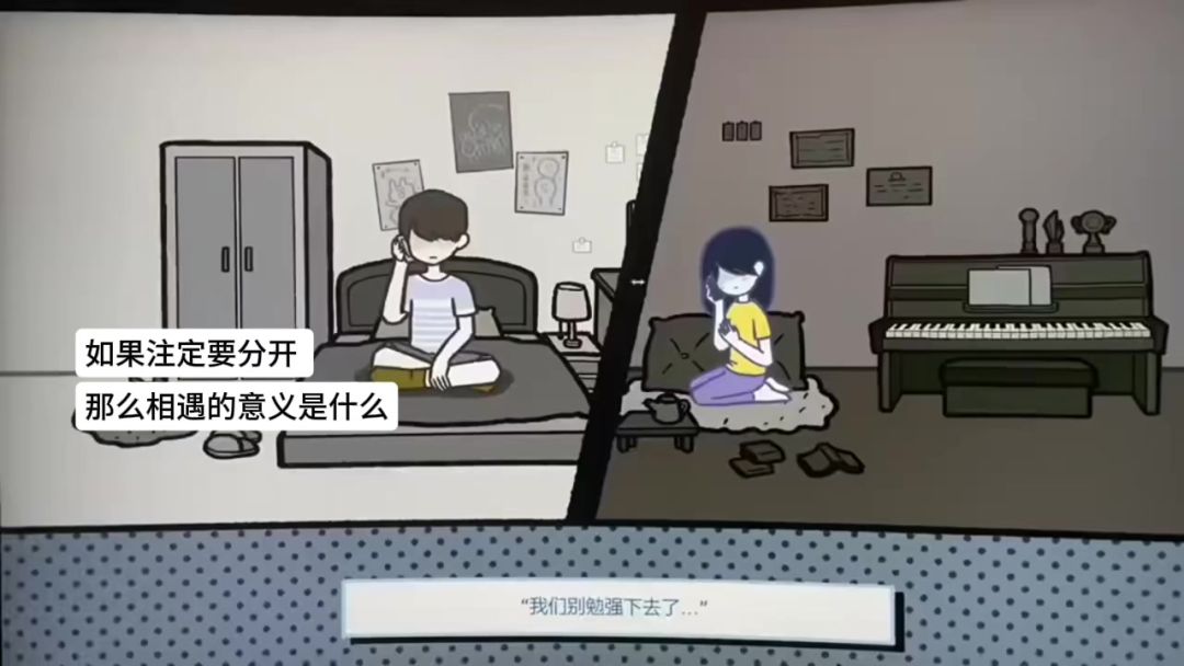开始以玩游戏快点通关的心态去玩,去选择,可只能换来第一关一次次的钢铁直男成就,直到再一次玩到月色下时在思考没有去选择,不小心点到了两个人的手,那一刻才知道很多时候爱不在选项中,需要的是等待,是陪伴,耐心,细节。第二关以无比细心认真的心态去玩,不放过任何一个细节,追求做到完美,可最终结局都只能看她追踪梦想,明白了努力不一定就一定能有好结局,人生总是充满各种各样的遗憾(但至少努力也有努力的收获吧)