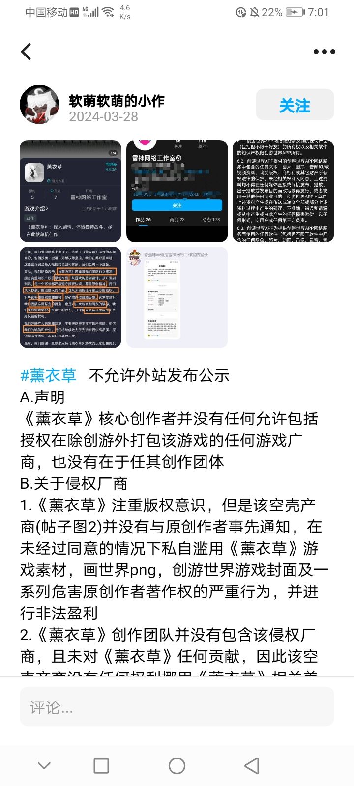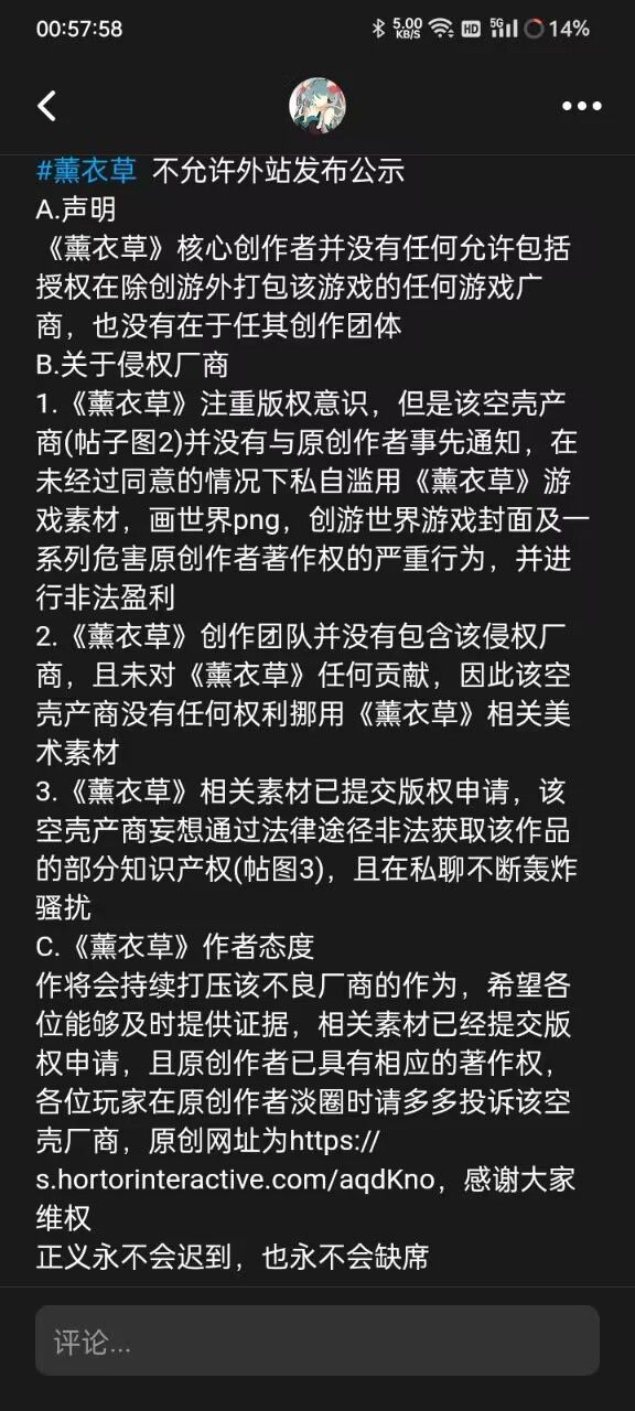 这边呢,我说一下。我是小匕u,是“没有工作室”的成员。关于“薰衣草”这部作品是由作者单人研发的,仅仅只有方糖参与了剧情设计 火影迷和我客串了角色。其他人均与这部作品没太大关系。