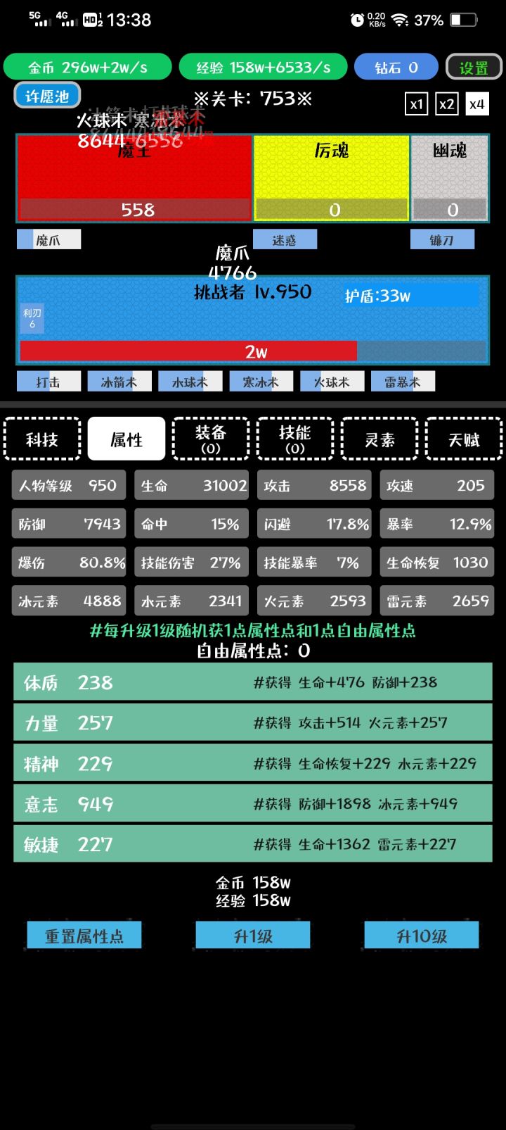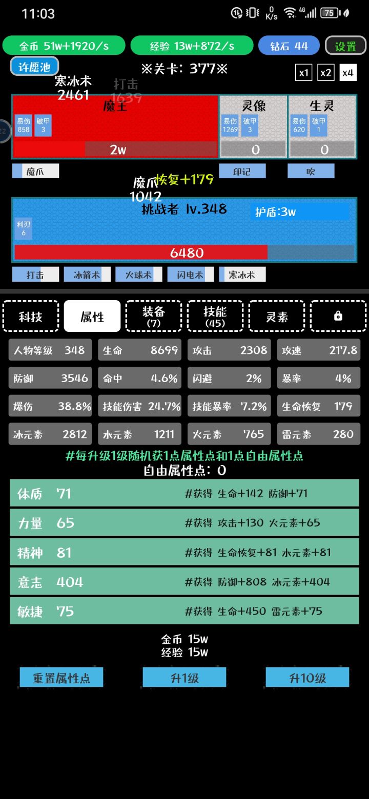 推荐冰属性,技能全部带护盾,灵素开了记得先抽灵素,先把冰属性的点满。