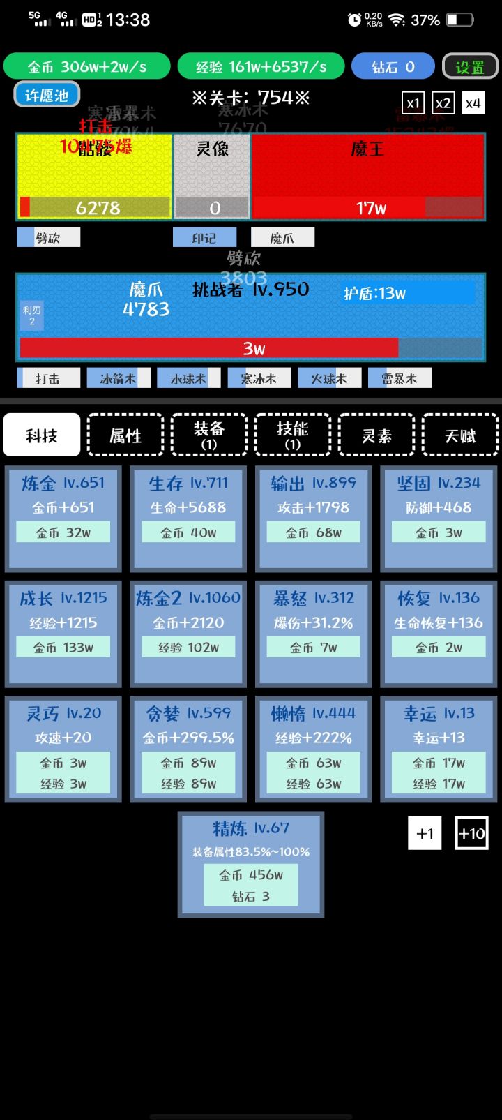 挺不错的一个游戏,画面虽然简单,但是内容却很丰富,整体思路是可以分很多流派的,最开始玩火加攻击打得快,后面转成冰盾,虽然打得慢,但是还是可以慢慢推关的,上线领收益然后升级各种科技和人物等级,有广告,但是又不像广告,点几分钟就可以领完了,非常好。