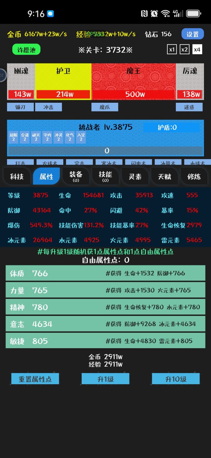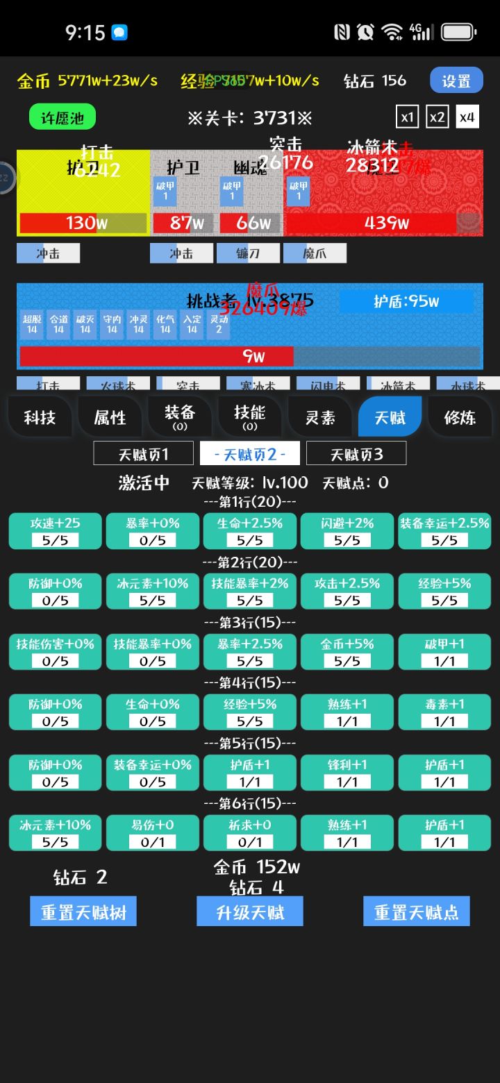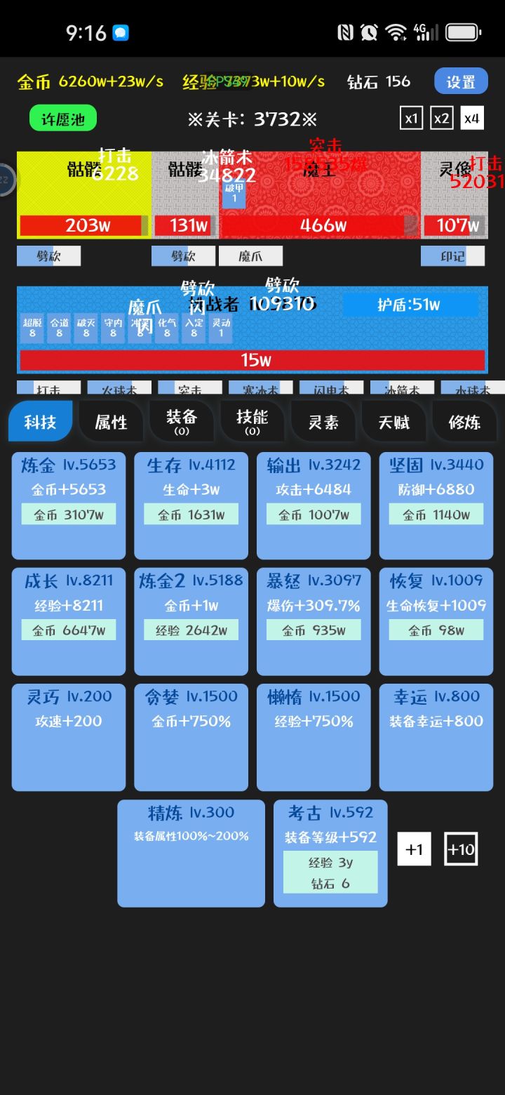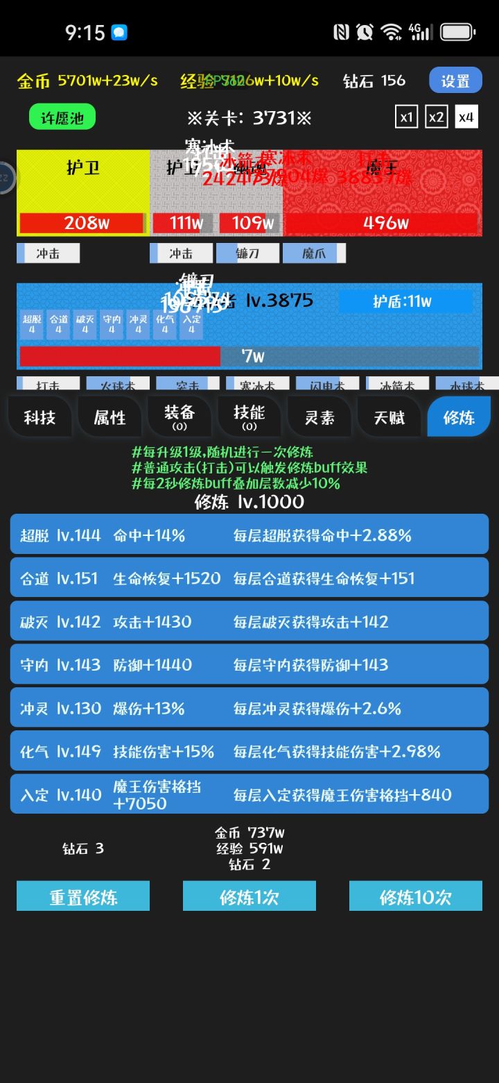 1000关,后面应该没啥新东西了,毕业技能3~4个4.5护盾+灵动/熟练,有条件再配个易伤,天赋2盾2灵动以上,有熟练易伤更好,装备全带闪避,其次技能CD,其次冰元素,后面关卡全靠闪避抗到开盾,然后叠灵动,3级灵动一层3%闪避,叠满24层72闪避,加上面板百闪了,就是经常闪退,离线也不能自动推关,也没啥好玩的了