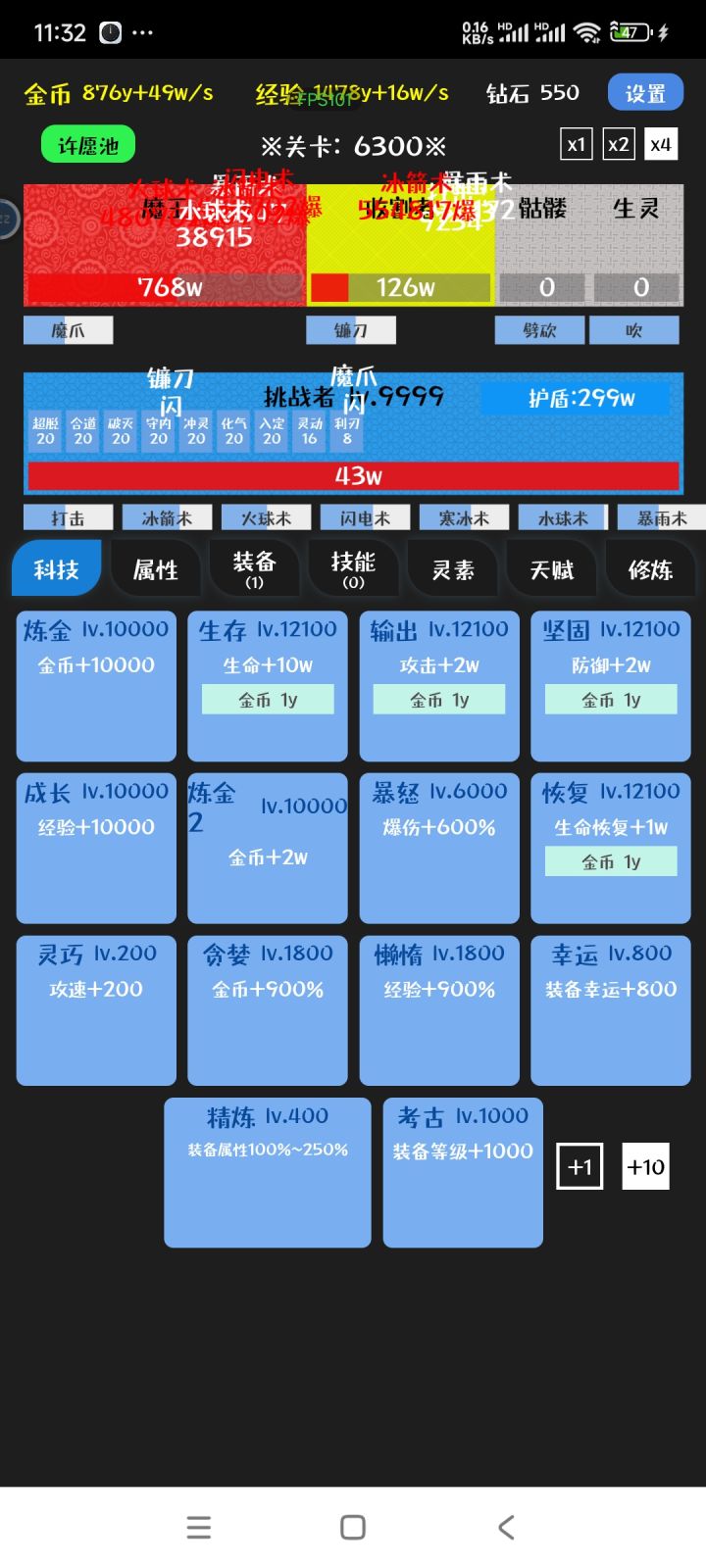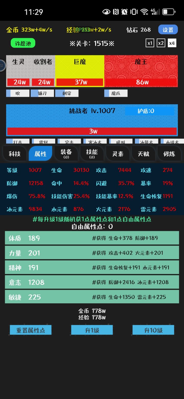 挂机一天,中午打到1500关了