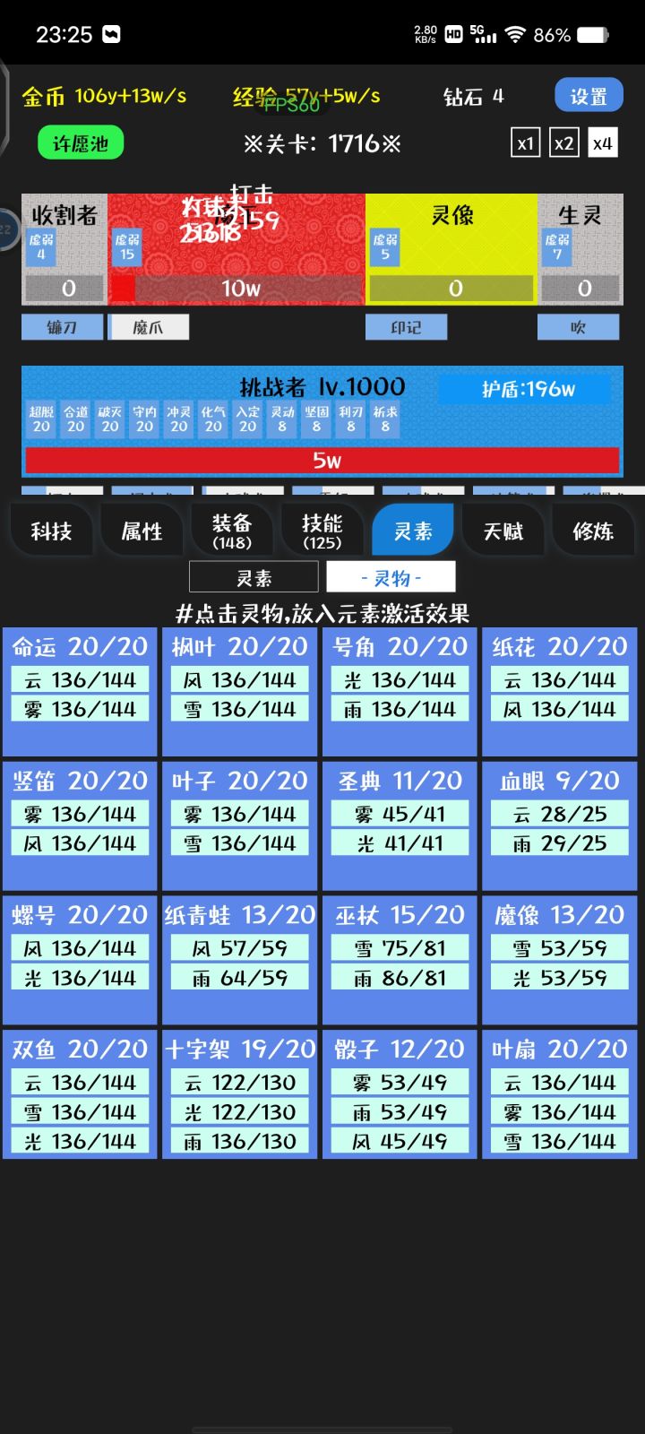 1. 开局苟到20级刷技能,神级技能很难出,刷到词条为熟练+护盾的4.5秒技能就可以玩了,追求完美的可以刷词条为熟练+护盾+多重的4.5秒技能。楼主玩到600关还是些垃圾技能,好技能很难出的。2. 科技优先收益项,属性项加的不多。 3. 装备做全冰元素,给护盾加成。后期要着重注意闪避词条,因为怪会秒人。 4. 300关出灵素,先做冰,再做火,再把雷系最后一个凑闪避的做了就差不多了。技能词条带