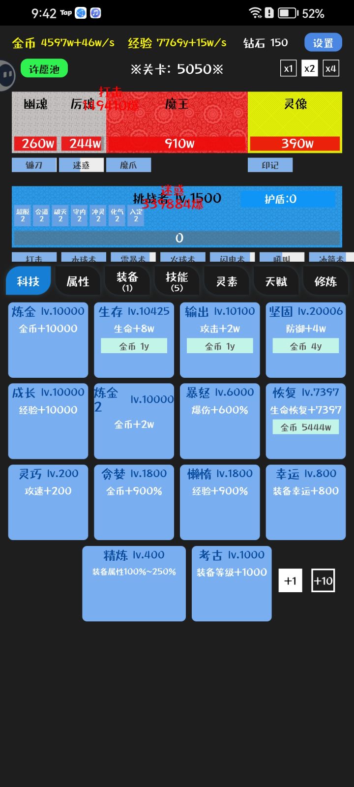 1. 开局苟到20级刷技能,神级技能很难出,刷到词条为熟练+护盾的4.5秒技能就可以玩了,追求完美的可以刷词条为熟练+护盾+多重的4.5秒技能。楼主玩到600关还是些垃圾技能,好技能很难出的。2. 科技优先收益项,属性项加的不多。 3. 装备做全冰元素,给护盾加成。后期要着重注意闪避词条,因为怪会秒人。 4. 300关出灵素,先做冰,再做火,再把雷系最后一个凑闪避的做了就差不多了。技能词条带