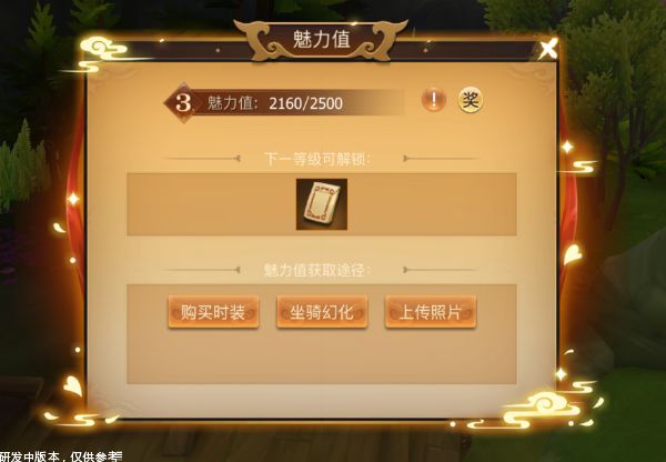 魅力值系统是从老版本继承而来的老系统,反映了角色整体的魅力,主要通过各种外观系统进行培养。拥有时装、时装染色、坐骑都能增加魅力值,魅力值达到一定程度后,可以升级魅力等级升级魅力等级,可以获得称号或其他奖励以上就是魅力值系统,感谢看官的关注!