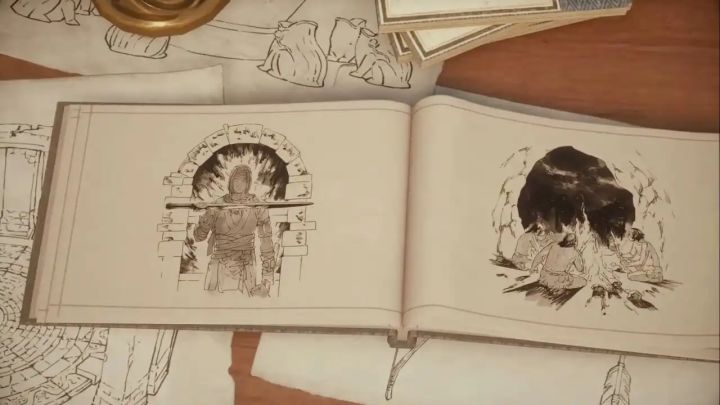 1、襄垣与始祖剑(左)、燧人氏钻木取火(右) 左:安邑铸剑大师襄垣取火神祝融之源火“燎原火”、金神蓐收之源金“烈瞳金”、水神共工之源水“玄冥水”、风神飞廉之源风“青萍风”所铸。燎原火熔炼,玄冥水淬冶,金铁铸就,榣木制柄,烈瞳金为剑身,长三尺六寸五,宽三寸三。随后蚩尤凭始祖剑之威,成为天下之王。(古剑系列世界观) 右:上古之世,民食果蓏蚌蛤,腥臊恶臭而伤害腹胃,民多疾病。有圣人作,钻燧取火,以化腥