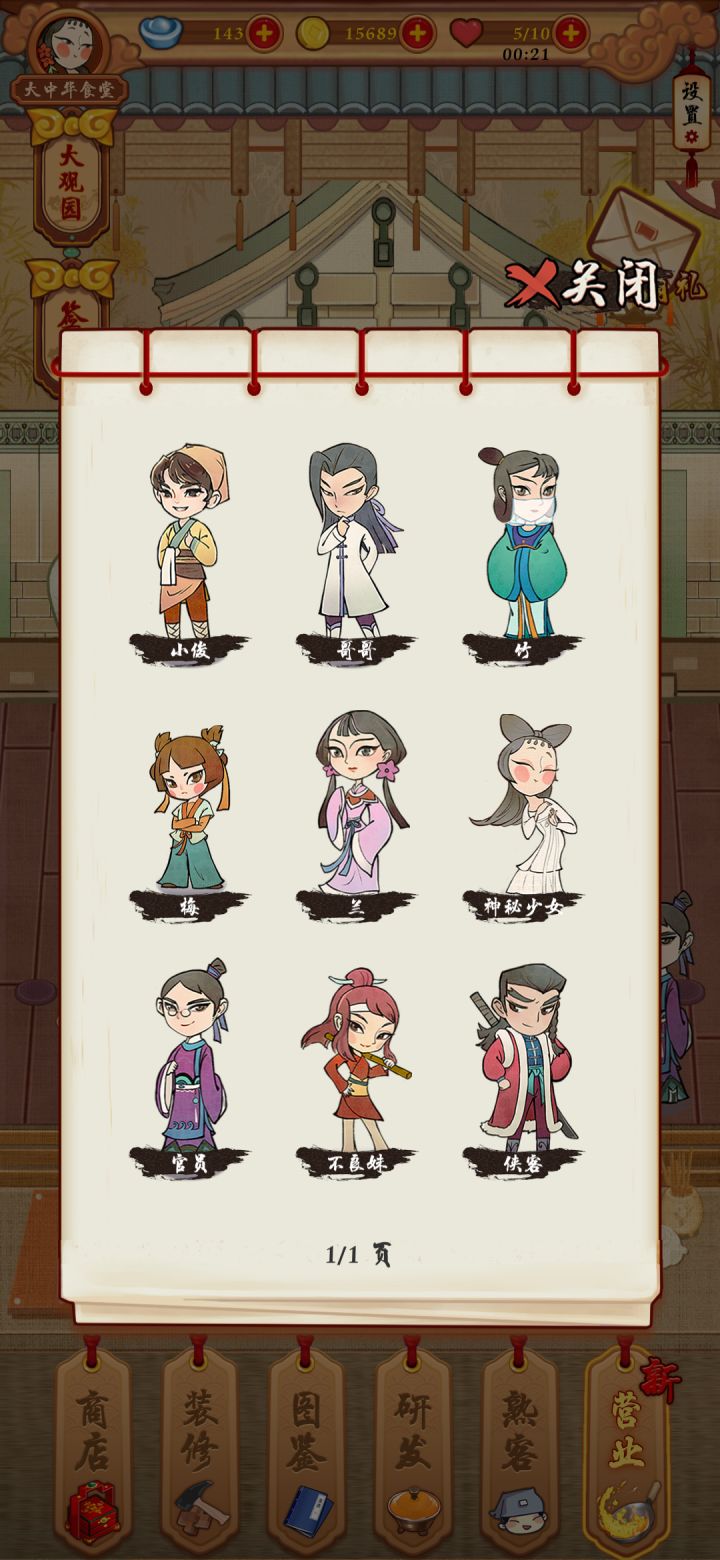 先上图了解一下本人已通关(关卡通过但是物品没收集全)。第一次写攻略不足请指出。1.关于元宝①元宝现在图鉴点击分享就可以获得②人物每触发一个事件熟客里面也都有赠送元宝③大观园第一观和第三观(一天一共只有三个视频谨慎选择,加速研究菜谱的视频也算在里面)④元宝我还有一堆没用完2.关于金币①个人推荐购买日晷和招财猫,后期卡关必须这两个道具②体力恢复很快,个人不推荐购买。好感礼包点心基本没用