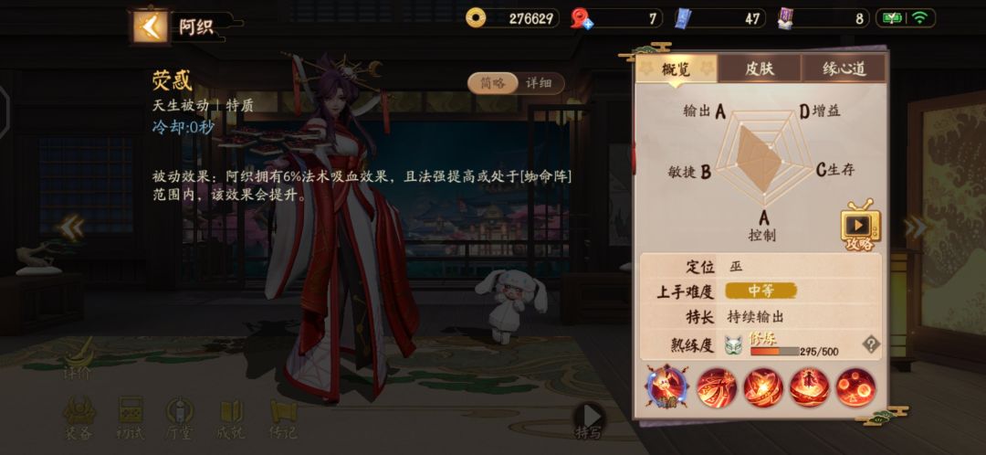 直接进入正题吧? 技能介绍: 特质「天生被动」: 拥有初始6%的法术吸血,如果法强越高,吸血能力会也高。同时 如果在三技能内也会提高。但是不管是两者哪个条件 都会有上限,最高是1.5倍。 阿织对线不虚的其中一个原因就是自带法吸,能在换血的时候占到便宜。 一技能:宙光符 释放8到符咒攻击周遭敌人,对小兵伤害提高。多到符咒命中同一目标,后续伤害降低。 多群较弱,对单强势的一个技能。因为他如果周围有多个