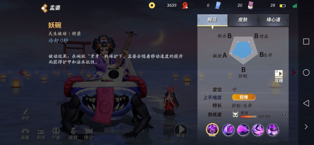 这个系列主要是向萌新推荐,向大佬拓展思路的系列。并不保证强度,一定保证快乐。 【一】式神技能介绍 这个技能是保证孟婆中期能不被秒杀的重要前提。速度越快双抗越高,加上大招的过程中不会被控制(压制也不行)。就有极高的输出空间。 1级到6级的对线期间用来远程补兵的技能。六级前甚至打不过犬夜叉的上单仅此一家。(跳妹:那我走?)对线期的疲软要到达五级时。离第一件装差几百块金币之间。可以通过三技能神力加速以及