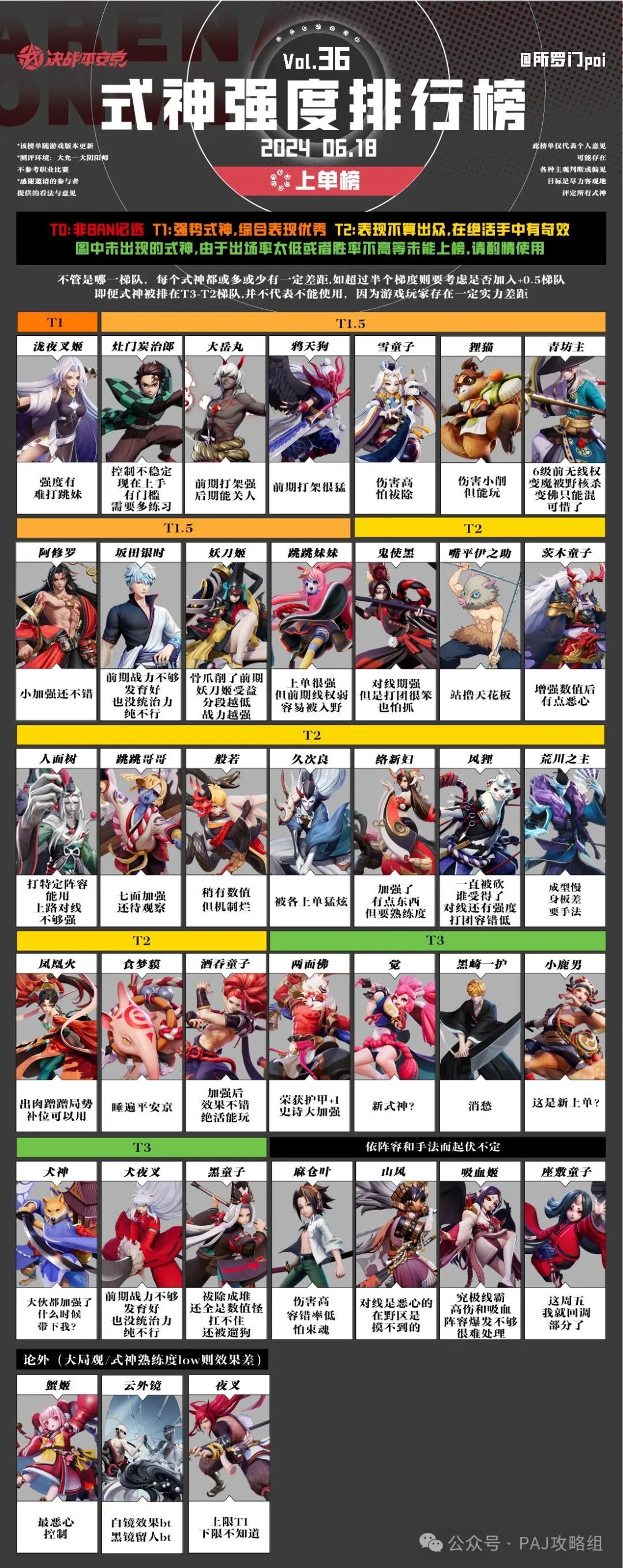 鸣谢 关注绿泡泡公众号【PAJ攻略组】获取第一手资讯 本强度排行榜来自B站up主【所罗门poi-】 本转载已得到原作者允许,本转载无任何收益性质 协助制作人: @吃土打野Forest @LNG-Avenger @LF_Yelan @sakanachannn @LF_MMT 仅代表个人意见 ,仅供参考 前言: 仅代表个人观点 不等于绝对客观 可能存在各种主观评判甚至偏见 目标是客观评定所有式神 将会