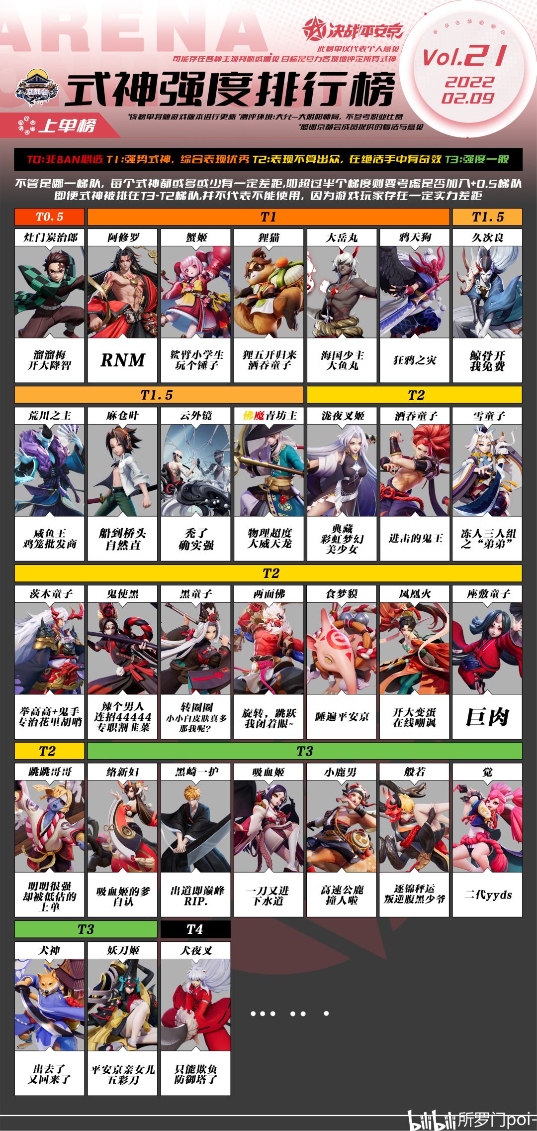 【制成时间——2022.3.13】 【2022年6月8日最新一期已发布】 —————————————————————— 《京都会》 致力于给平安京广大玩家提供攻略,帮助大家能有更好的游戏体验 前言: 仅代表个人观点 不等于绝对客观。 可能存在各种主观评判甚至偏见,仅供参考。 目标是客观评定所有式神 将会随着版本进行更新。 测评环境:大允-名士局 不参考职业比赛 不管是T0 T1 T2也好,每个式神