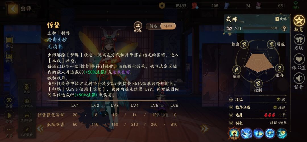 虫师输出:B——后期每六秒一发总共125%法强的怼脸 虫师增益:B——最高150%法强的回血、90%法强的护盾,还带加速,自身永远不会被先手还带群体解控 虫师控制:B——击飞、减速、减速,因为不需要瞬步可以多个格子带束魂(还好把阴间催眠砍了少个喷点 )