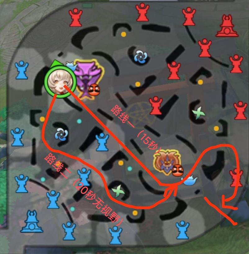 饭桶支援需要清完兵线,传送转好,一波支援大概要30秒,打完后血量基本大残 从上路蛇坑草丛出发 路线一需要15秒,可能被中路看见 路线二需要20秒,基本无视野 如果对面压塔,不绕路,直接创过去只要10秒 注意:无敌猪车大王需要极高熟练度,并且风险极高收益小,中途撞墙不但会支援失败,还有一分钟大招cd,没传送的话至少亏一波兵线甚至掉塔,直接爆炸💥! 仅供娱乐[表情_斜眼笑]