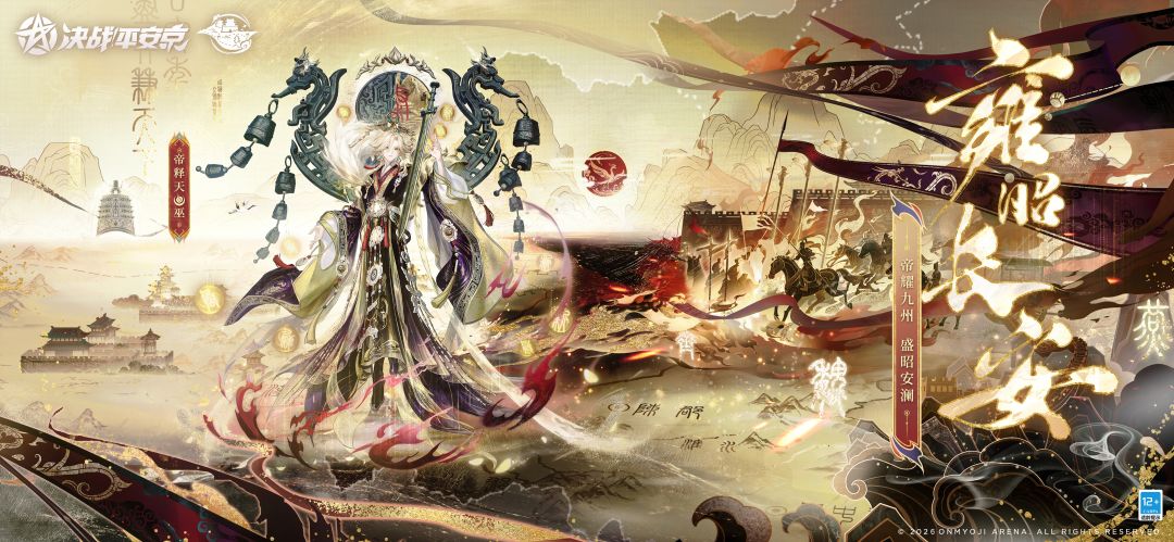 玄甲为笔绘山河,金戈作墨定风波, 千古王气凝城阙,十三朝光入冕罗。 玉碗斟来屠苏暖,宝鼎沸开九陌歌, 新元共许升平愿,长佑山河万世兴。 2月16日零点-4月12日,帝释天全新岁祈安澜系列传说限定皮肤「雍昭长安」将上架服装铺,售价168皮肤券,前两周享受8.8折特惠!购买「雍昭长安」即赠送[定制按键·雍昭长安],大人们请勿错过哦~ ▷特效设计思路 帝释天是三秦大地历代帝王之气汇于地脉所化的灵,他以长