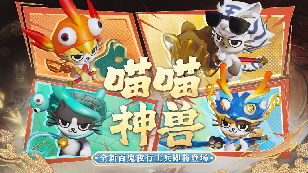 #来平安京开团圆局 ☆全新士兵皮肤☆ 灵瑞祈愿,马年呈祥!全新百鬼夜行士兵·喵喵神兽即将惊喜登场! 2月16日-3月12日,大人们消耗勾玉购买[灵瑞券礼盒],保底80抽内必得限定百鬼夜行士兵皮肤[百鬼夜行士兵·喵喵神兽]!参与活动抽奖还可获得[百鬼夜行特效·瑞焰之夜]、[晴明井特效·红包雨]、帝释天全新表情牌[来支援了]、[V我50]等各类个性装扮道具!参加 [岁祈福袋]活动可得更加优惠的[灵瑞券