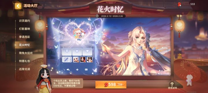 时祺福至,马到功成!2月12日维护后,大人们参与[时祺踏春行]等春节活动,与式神崽崽们结伴,同游美景,领取[勾玉]、[皮肤]、[皮肤券]和[岁祈安澜头像礼盒]等奖励!更多详情快戳视频了解吧~(● ˃̶͈̀ロ˂̶͈́)੭⁾⁾ ⋆⌁⌁⌁时祺踏春行⌁⌁⌁⋆ 活动期间集齐指定数量照片,可领取[皮肤券]*5、[宝叶]*300和[岁祈安澜头像礼盒]奖励! ⋆⌁⌁⌁福骐献瑞⌁⌁⌁⋆ 参与活动消耗[金驭币]即可