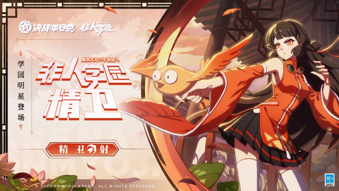 弹弓鸟威风凛凛,石子如弹丸射出, 翎羽头发飞展,身形似飞鸟翱翔, 贵族大小姐的精力如火焰旺盛, 要来一场刺激的打水漂大战吗? 《决战!平安京》×《非人学园》 联动即将开启!全新【射】类学园明星「精卫」将于8月18日起正式加入平安京战场! ▷技能设计思路 精卫是一名热衷打水漂的傲娇少女,我们期望在平安京战场中也能展现精卫敏捷伶俐的风采,并还原出她打水漂时收放自如的感觉,因此整体上会还原她在非人学园中