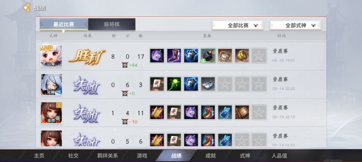 这个匹配机制绝对有问题,不知道什么时候匹配机制会要你输,你玩的多好都不会赢,玩的再烂也不会赢,然后就等着系统什么时候安排你赢。我只玩打野,20-4的局和0-4的都没区别,都是输。在名士4打了四十把没上一分,今天早上一打,我被打爆的鬼使黑和0-2的红叶都赢了,不玩打野自己c了反正都是输,结果没十把就阴阳师了,恶心死了。然后继续打,四把全输,打野茨木9-2,真天7-3全是没办法的局,第一把上单挂机,第