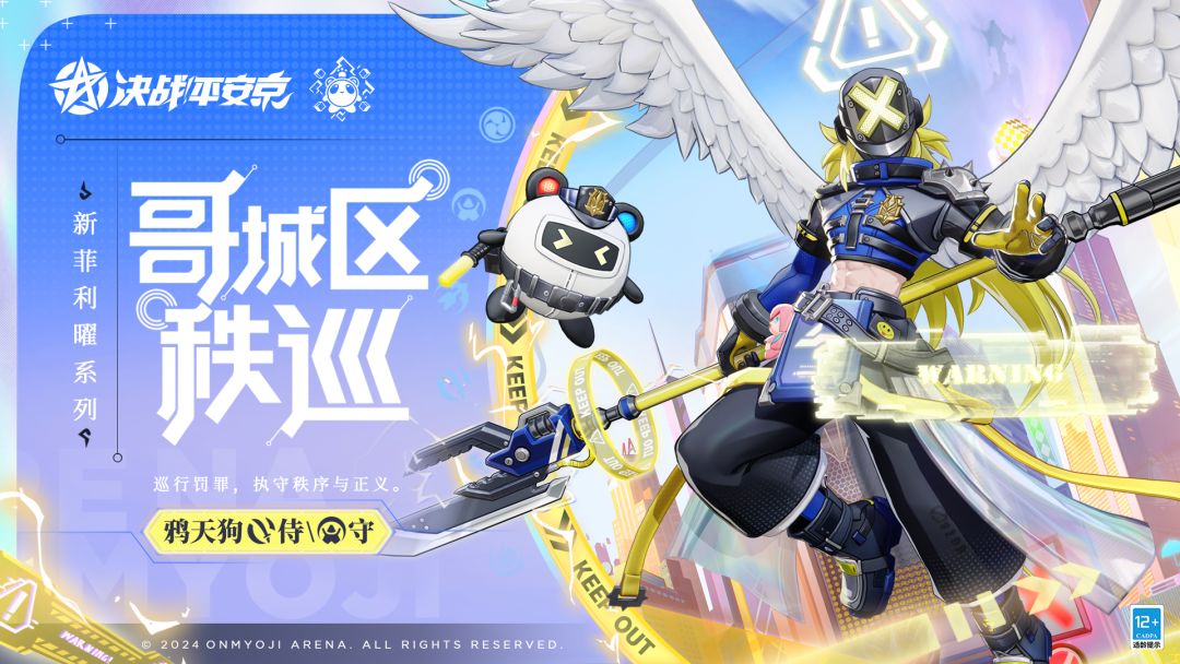#平安京新菲利曜 #决战平安京 刀锋露芒,雷光若现, 恪尽职守,自恃超凡。 这被幻光所侵蚀的世界, 他相信,终会被他拯救! 鸦天狗新菲利曜系列皮肤「哥城区·秩巡」将于11月8日维护后上架服装铺,售价86皮肤券,首周享限时8.8折优惠!参与活动[曜彩霓光],完成任务即可领取[新菲利曜·专属抵扣券]、[集结·新菲利曜头像礼盒]等珍稀奖励,大人们可别错过啦~ 樱子小贴士:[新菲利曜·专属抵扣券]