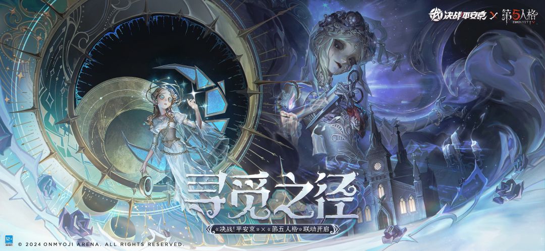 #决战平安京第五人格联动 悬月高挂,迷雾笼罩庄园, 提灯昏暗,脚步惊扰蝙蝠。 穿越星辰,无惧烈焰的女巫编制命运, 拘禁灵魂,缝纫玩偶的夜魔高举尖刀。 《决战!平安京》×《第五人格》联动即将开启,雪女联动限定皮肤「宇宙女巫」、阎魔联动限定皮肤「夜魔」即将上线! #决战平安京 #第五人格