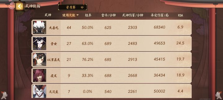 中单式神排行(个人观点)