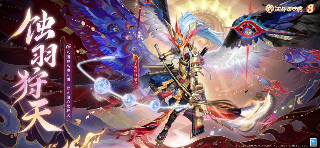 黑羽蔽日,血泪欲滴, 甲胄斑驳,长刃焚火。 执念扭曲意志,邪愿侵蚀神识, 怨念化作枷锁,囿于狩天之魇。 2025年12月26日维护后-2026年4月29日,鸦天狗全新典藏皮肤「蚀羽狩天」将开启限时兑换,售价688达摩币。兑换鸦天狗「蚀羽狩天」将额外赠送[定制按键·蚀羽狩天]和[头像框]! ▷特效设计思路 鸦天狗是昔日守护太阳的神圣使者,但凡间的执念与邪愿早已将他侵蚀。黑色的火焰燃烧着他的羽翼,