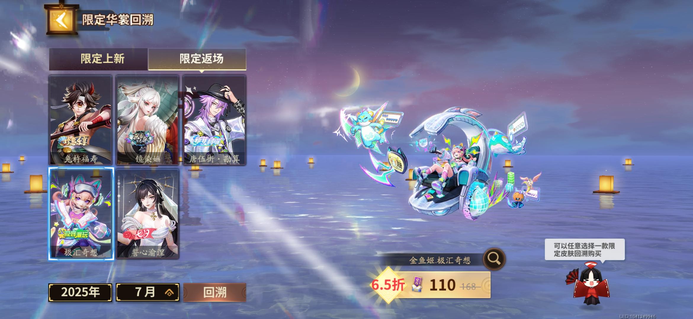 【新式神】因幡辉夜姬夜色清冷,竹影婆娑,弦月渐满,辉光洒落,看啊,那遥远月宫正敞开门扉——归期已至,可她竟不舍这人间呐。 特质[愿佑]:受到附近的敌方式神伤害时,自动对周围释放范围伤害并获得护盾。每隔一段时间,获得一次强化普攻,对目标造成范围伤害。一技能[愿满夜]:在指定区域召唤月之影造成伤害和减速效果,并标记被内圈命中的目标,记录目标当前位置,短暂延迟后将其传送回该位置。二