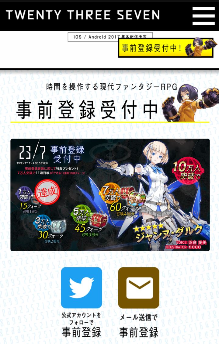 我在官网看了一下这个游戏的新闻啊,预约啊,玩法啊,风格啊,之类的的一些东西。怎么说呢:玩法和Fgo一样,横版回合制卡牌除了画风。。。其他没啥感觉新奇的地方,不过要等玩了才能具体知道这个游戏的意思,看剧情是蛮丰富,的样子。ps. http://www.23-7.jp/这是链接,挂个VPN就能看,日文