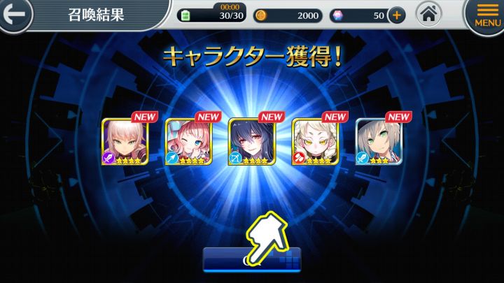 Ios的朋友直接删除客户端再下就是重新开始了刷了几次,这次初始五连就出了五星然后做完新手任务再十连又出了五星,恩,满意满意!不过日文苦手好多都看不懂,郁闷——————————哇哇哇哇,来更新第二次十连了,这个游戏好良心啊!第二次十连竟然两个五星!!!今夜做梦也会笑,捂脸
