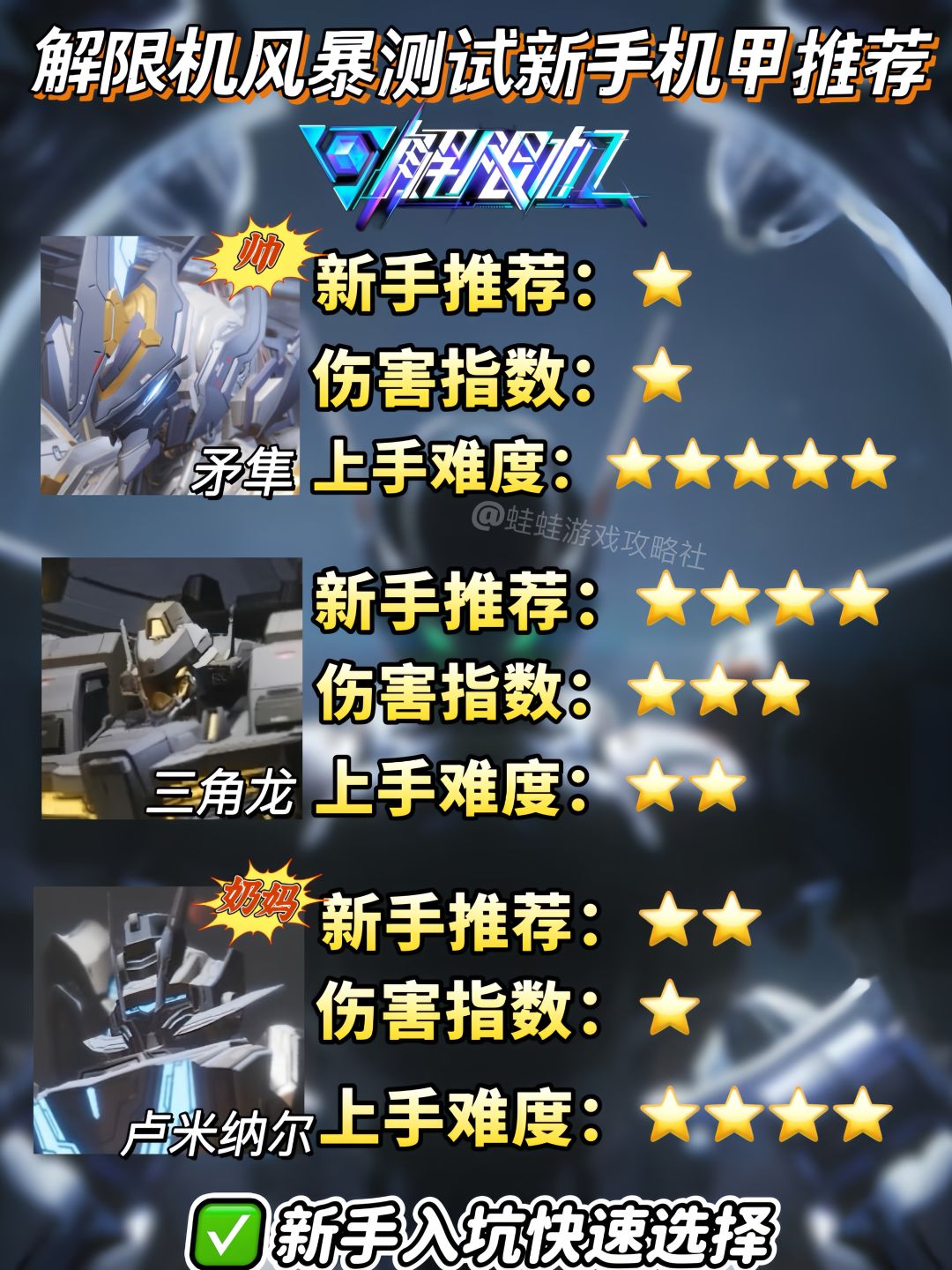 解限机新手必玩3大机甲保姆级攻略
